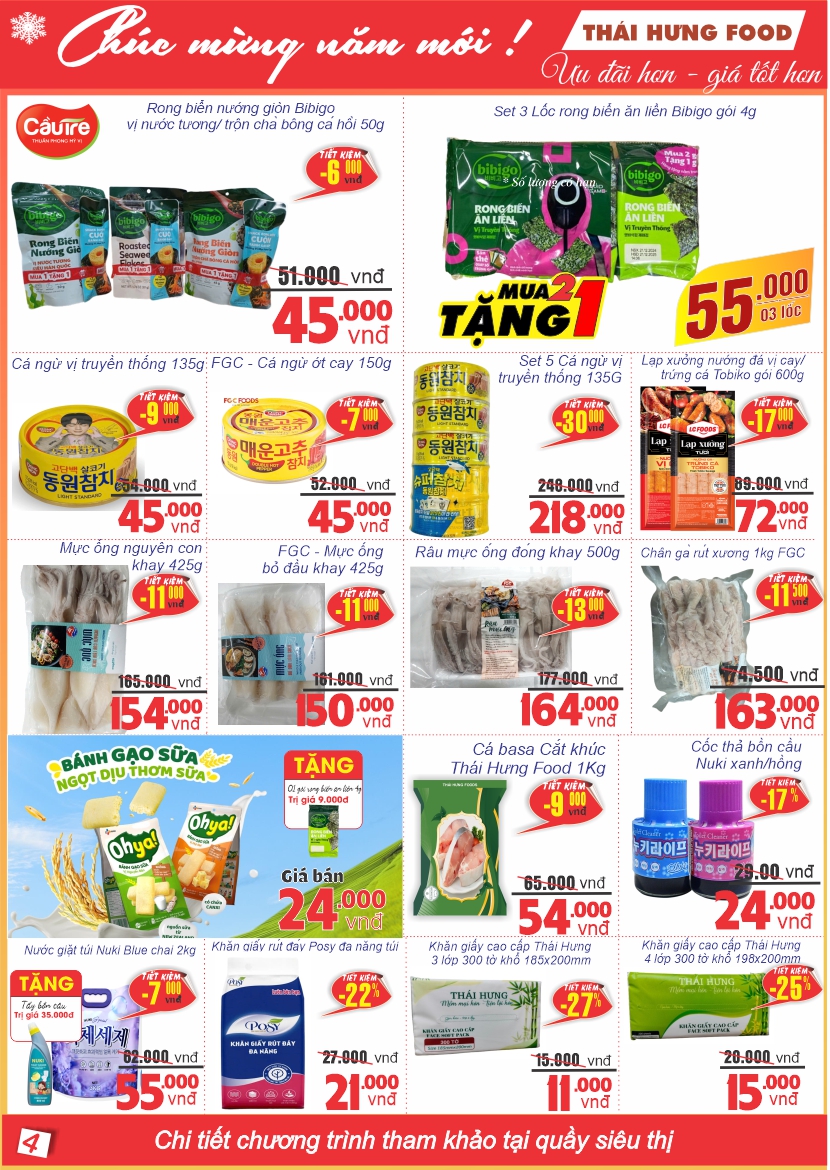 Chương trình ưu đãi giá sốc tập trung vào các sản phẩm thiết yếu, có tần suất sử dụng cao trong dịp Tết, bao gồm: