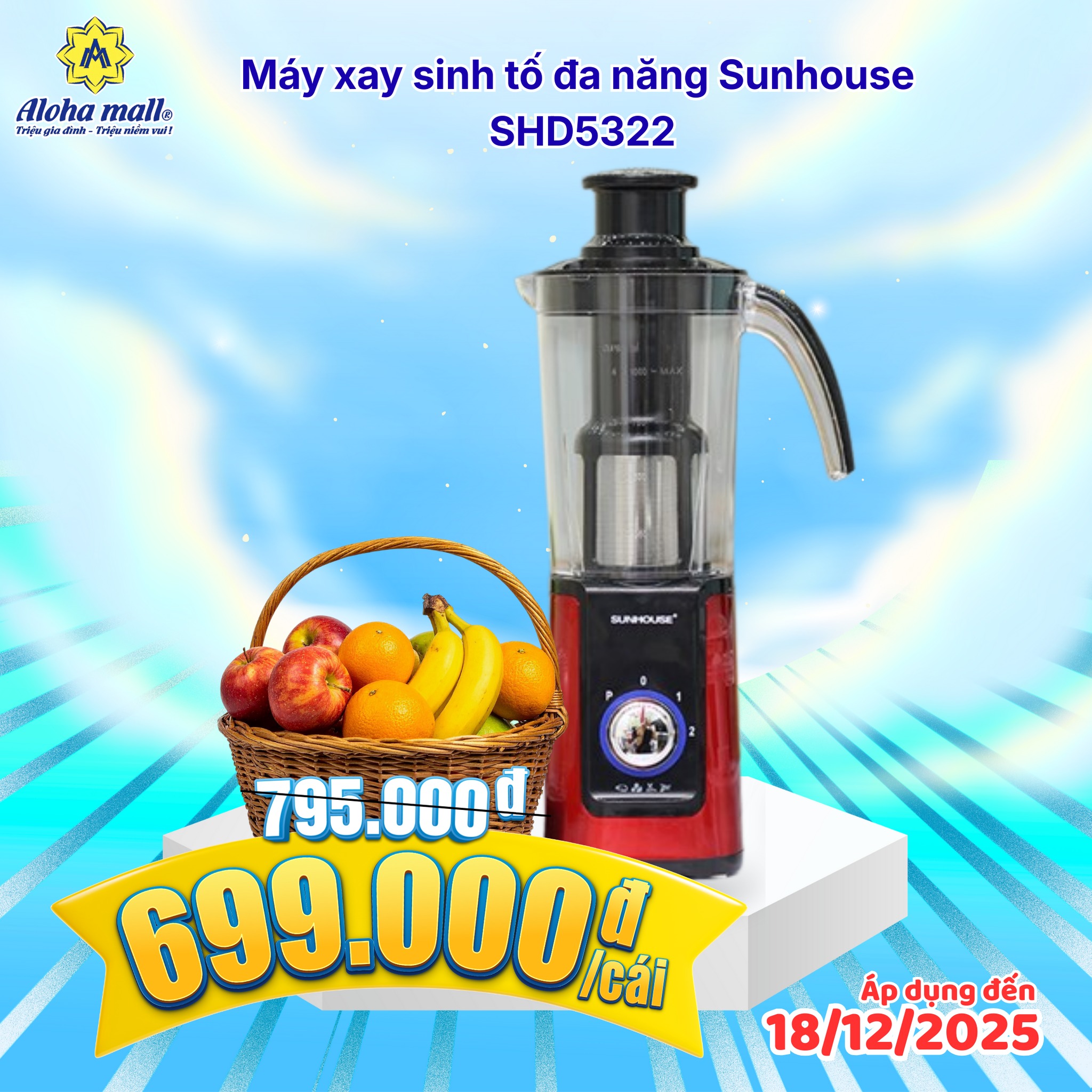 Hãy ghé ngay Aloha mall gần nhất để trải nghiệm và “chốt liền tay” những sản phẩm đang được săn đón nhất mùa này. Từ máy xay sữa hạt mini tiện dụng, máy xay sinh tố đa năng cho đến máy xay thịt công suất cao tất cả đều được ưu đãi hấp dẫn, giúp bạn dễ dàng nâng cấp căn bếp mà không lo về giá.
